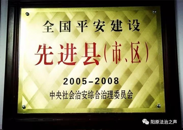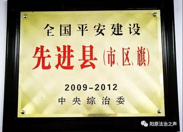 阳原县历来高度重视平安建设工作,通过全县人民的不懈努力,连续两届荣获中央综治委授予的2005——2008年度和2009——2012年度“全国平安建设先进县”。