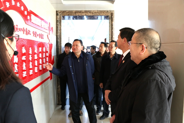 检察院荣誉室 上午9时,全体参会人员实地观摩了县检察院案件管理大厅、“12309”检察服务中心、检察文化大厅、赃证物管理室、电子卷宗制作室、案件评查室、远程提讯庭审室、党员活动室和荣誉室等,详细了解了业务科室软硬件建设情况,智慧检务、队建、党建、廉政建设开展情况,感受了检察文化的浓厚氛围。政法各部门的代表们在观摩现场边听边看边交流、不时询问、举起手机拍摄记录,现场互动学习氛围浓厚。